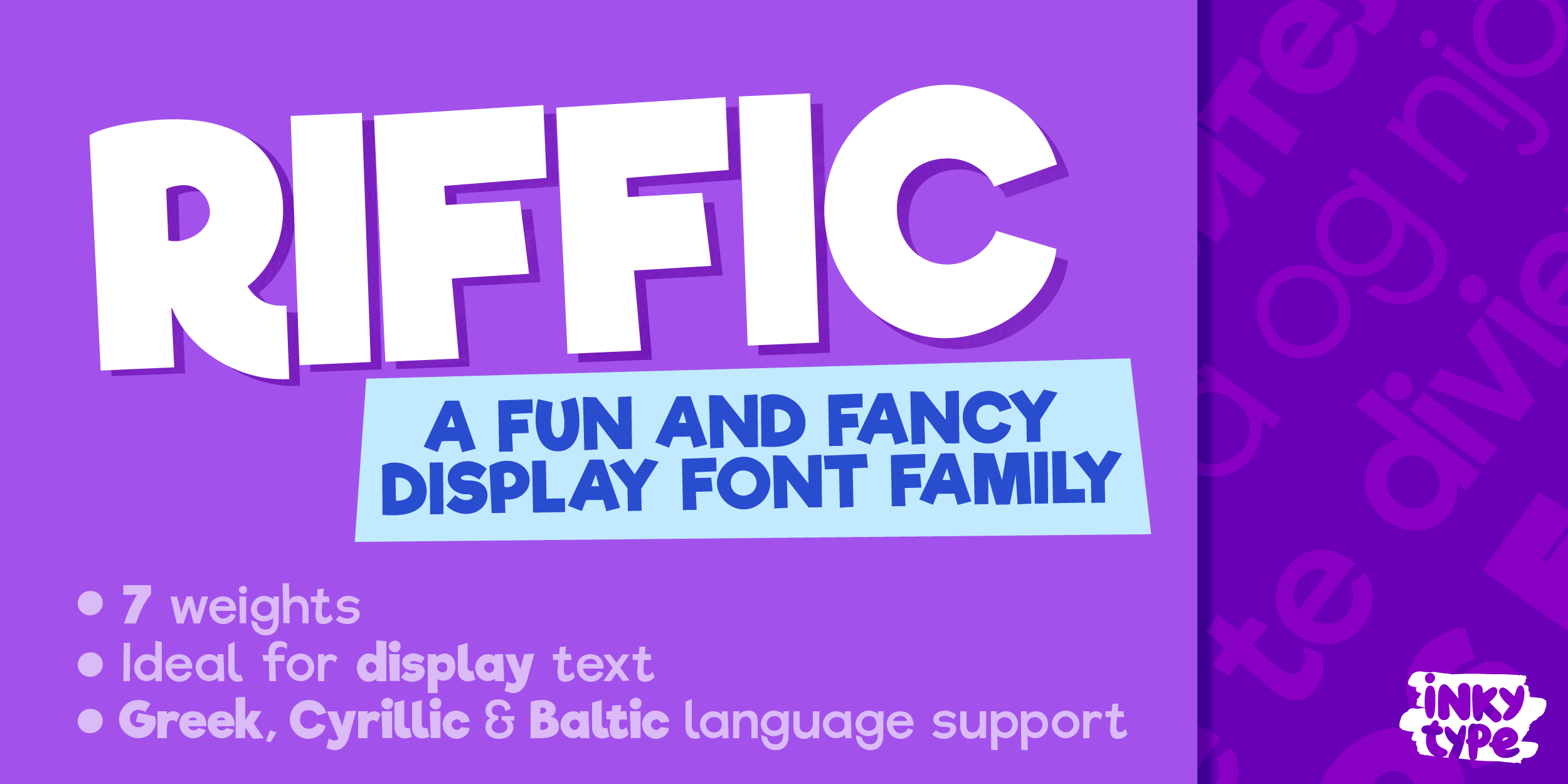 Designed by Nini Prower, Riffic is a display sans, hand drawn and kids font family. This typeface has seven styles and was published by InkyType.