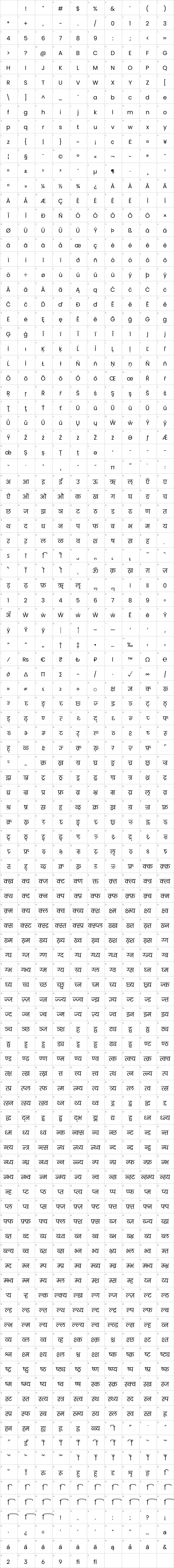 Each letterform is nearly monolinear, with optical corrections applied to stroke joints where necessary to maintain an even typographic color. The Devanagari base character height and the Latin ascender height are equal; Latin capital letters are shorter than the Devanagari characters, and the Latin x-height is set rather high.